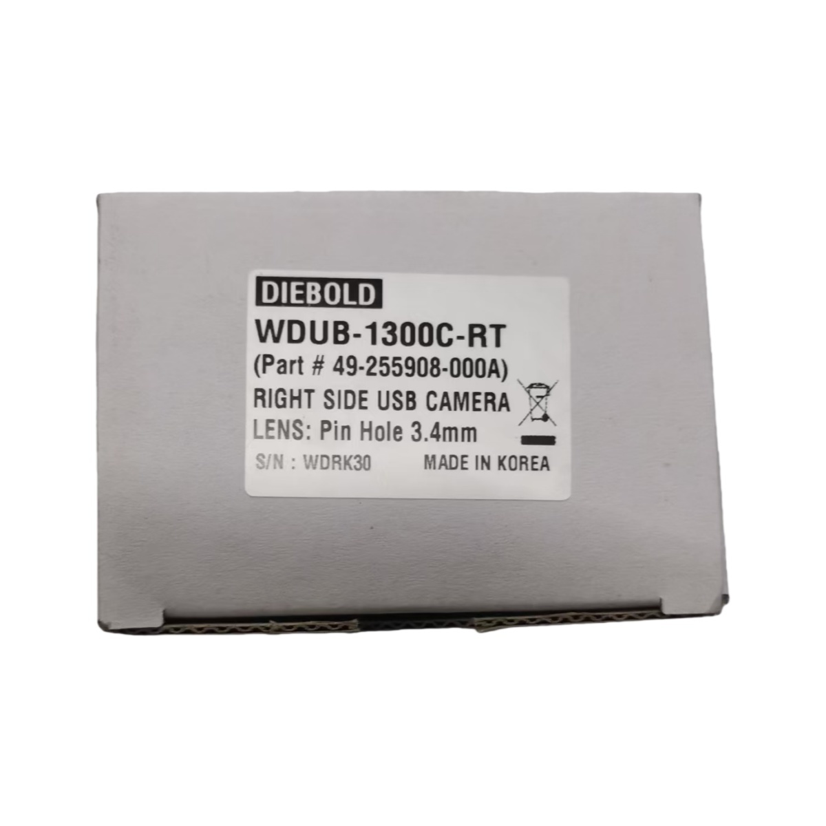 Diebold WDUB-13DDC-RT माइक्रो कैमरा ️ मूल नया, दाईं ओर USB कनेक्टर प्रकार। यह समर्पित एटीएम कैमरा एक वास्तविक Diebold घटक है,भाग संख्या 49255908000A और सीरियल नंबर WDRI300095 से पहचाना गया, मौलिकता और गुणवत्ता आश्वासन सुनिश्चित करना।